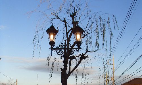 以前から使用されていたガス灯本体(風情)はそのままにして発光部のみLEDに更新した工事です
