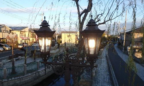 以前から使用されていたガス灯本体(風情)はそのままにして発光部のみLEDに更新した工事です